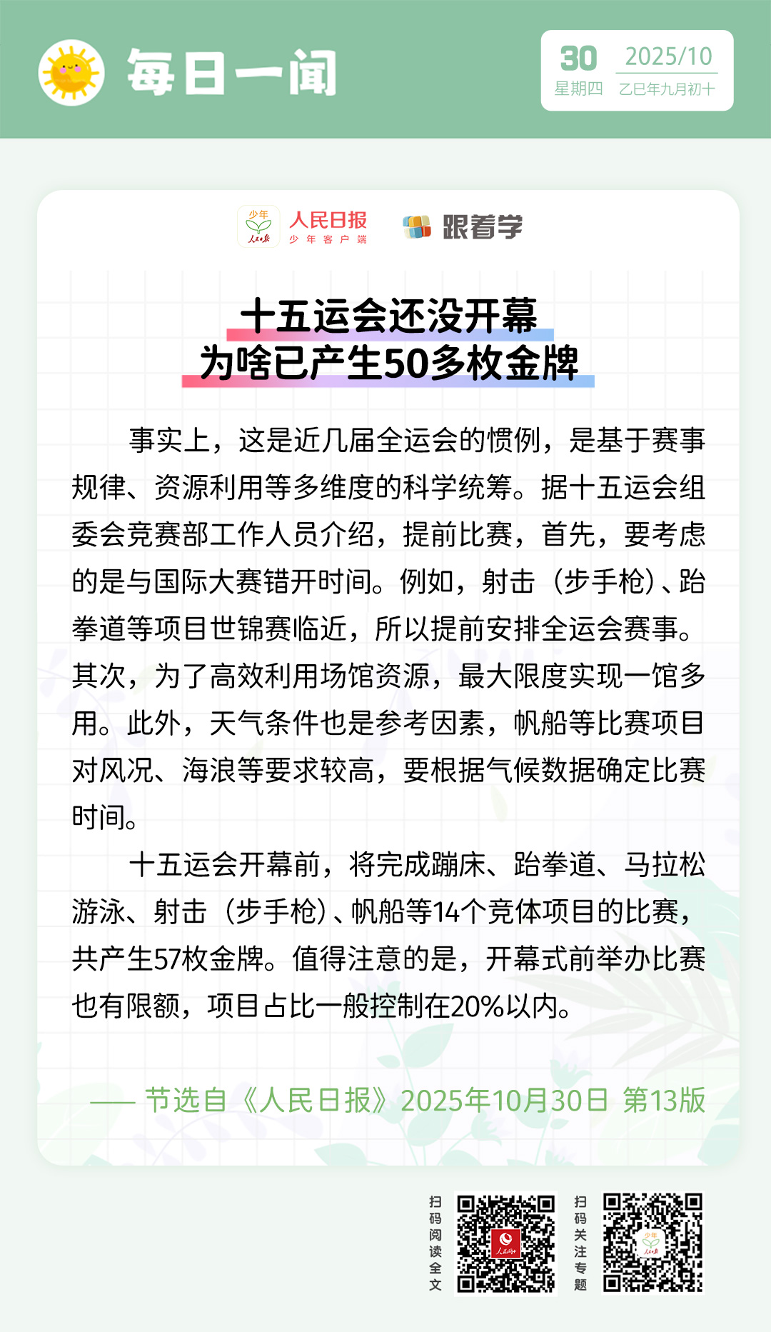 每日一聞丨十五運(yùn)會(huì)還沒(méi)開幕 為啥已產(chǎn)生50多枚金牌