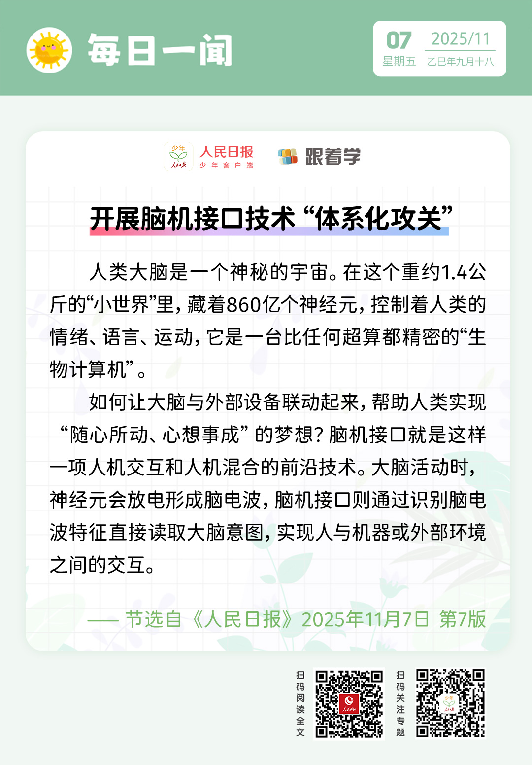 每日一聞丨開(kāi)展腦機(jī)接口技術(shù)“體系化攻關(guān)”