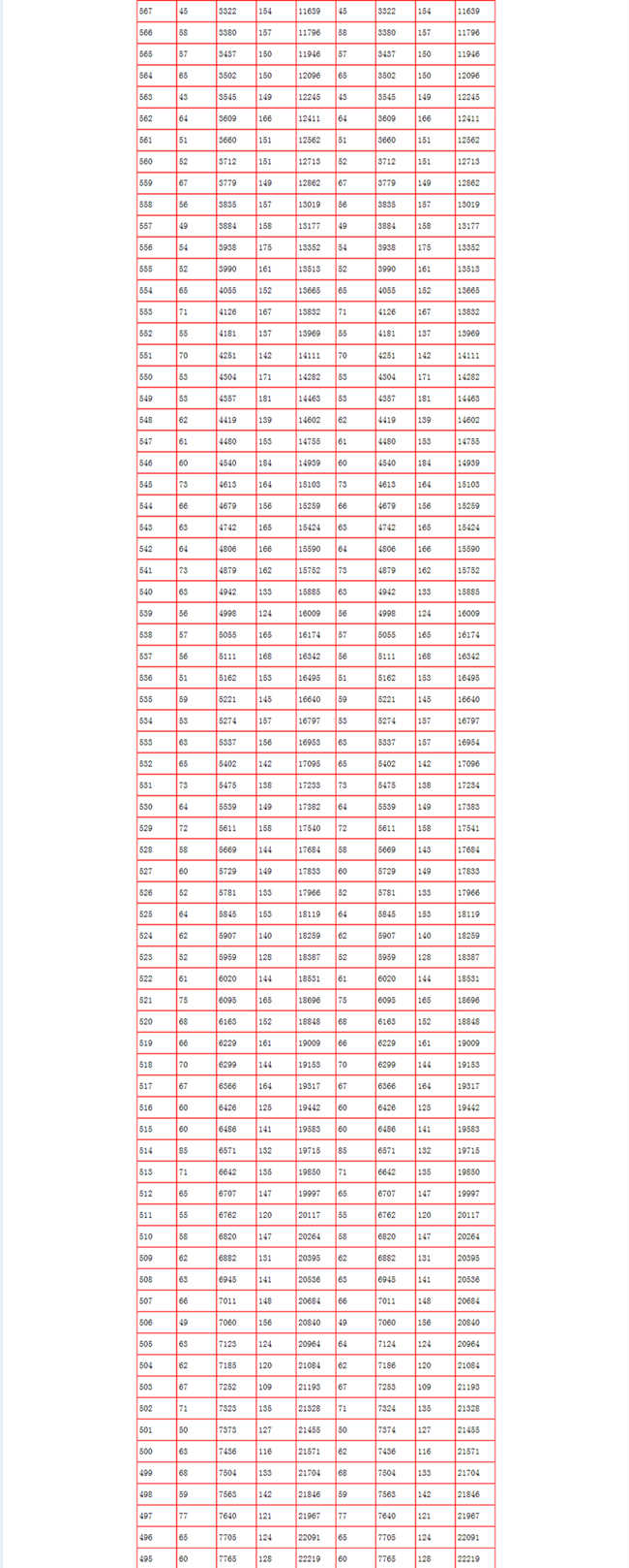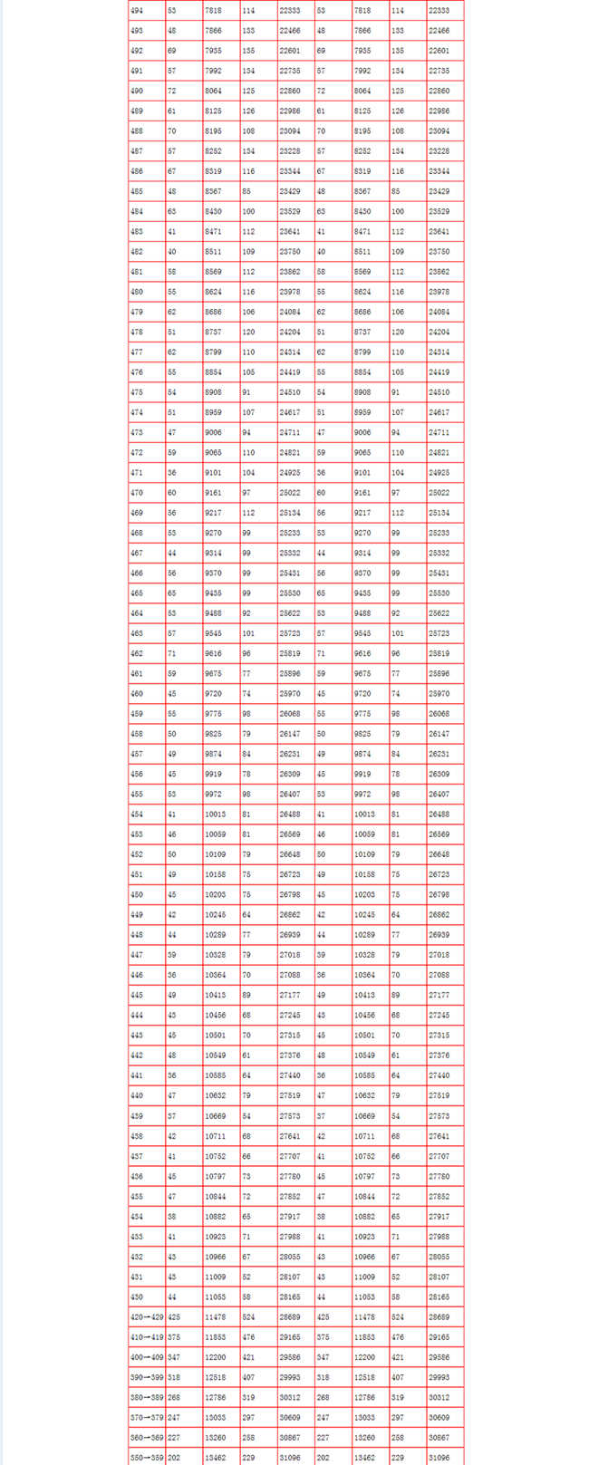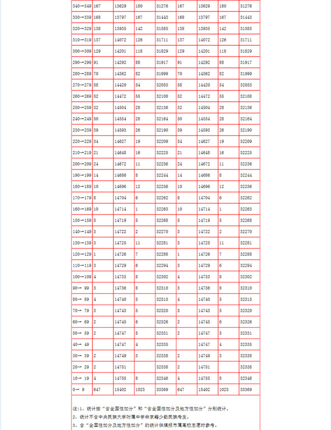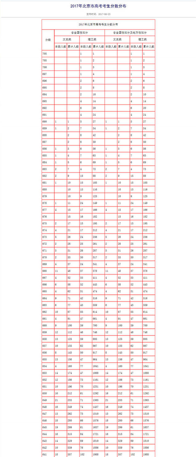 2017年北京高考分?jǐn)?shù)段統(tǒng)計(jì)表