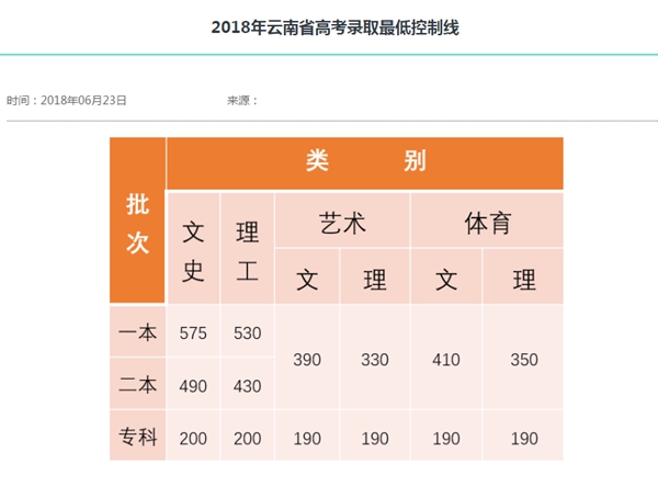人民網(wǎng)北京6月23日電 今天,云南省招考院公布云南2018年普通高等學(xué)校招生錄取最低控制分?jǐn)?shù)線,本科一批錄取控制分?jǐn)?shù)線:文科575分,理科530分;本科二批錄取控制分?jǐn)?shù)線:文科490分,理科430分。(劉婧婷)