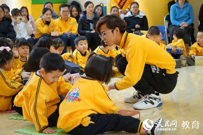 韓佩池在朝陽區(qū)金盞小金星幼兒園工作,可能你想不到,這名自信、陽光、充滿朝氣的大男孩,是園中唯一的一名男老師。
