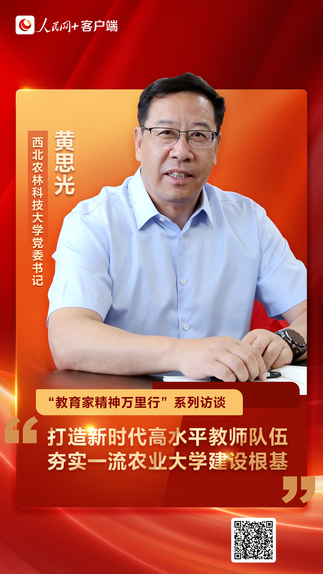 “強國必先強農(nóng),強教必先強師?!苯眨鞅鞭r(nóng)林科技大學黨委書記黃思光在接受人民網(wǎng)專訪時說,西北農(nóng)林科技大學堅持扎根西部大地辦學,牢記支撐引領旱區(qū)農(nóng)業(yè)發(fā)展的戰(zhàn)略使命,深入實施人才強校戰(zhàn)略,以教育家精神為引領,著力打造師德高尚、業(yè)務精湛、結構合理、充滿活力的新時代高水平教師隊伍,為建設中國特色世界一流農(nóng)業(yè)大學筑牢人才根基。