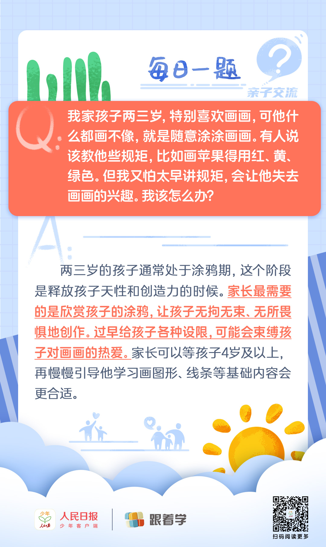 每日一題丨兩三歲孩子“瞎畫” 階段,是否該教畫畫規(guī)矩?