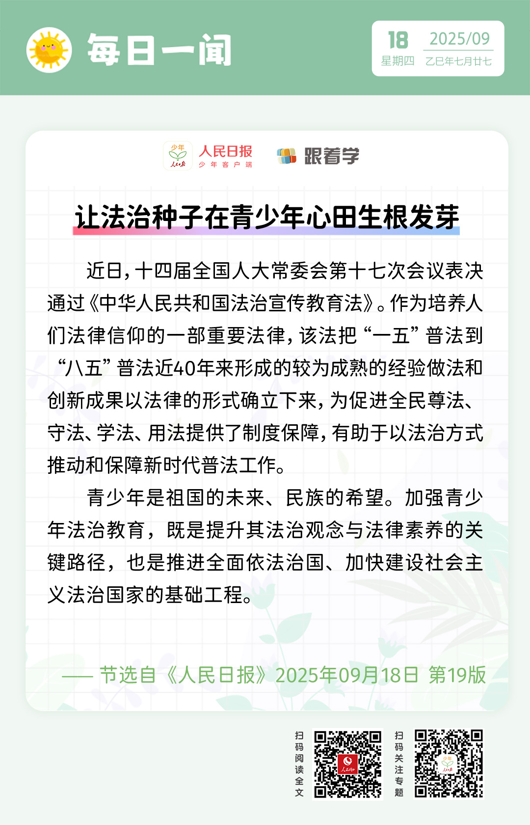 每日一聞丨讓法治種子在青少年心田生根發(fā)芽