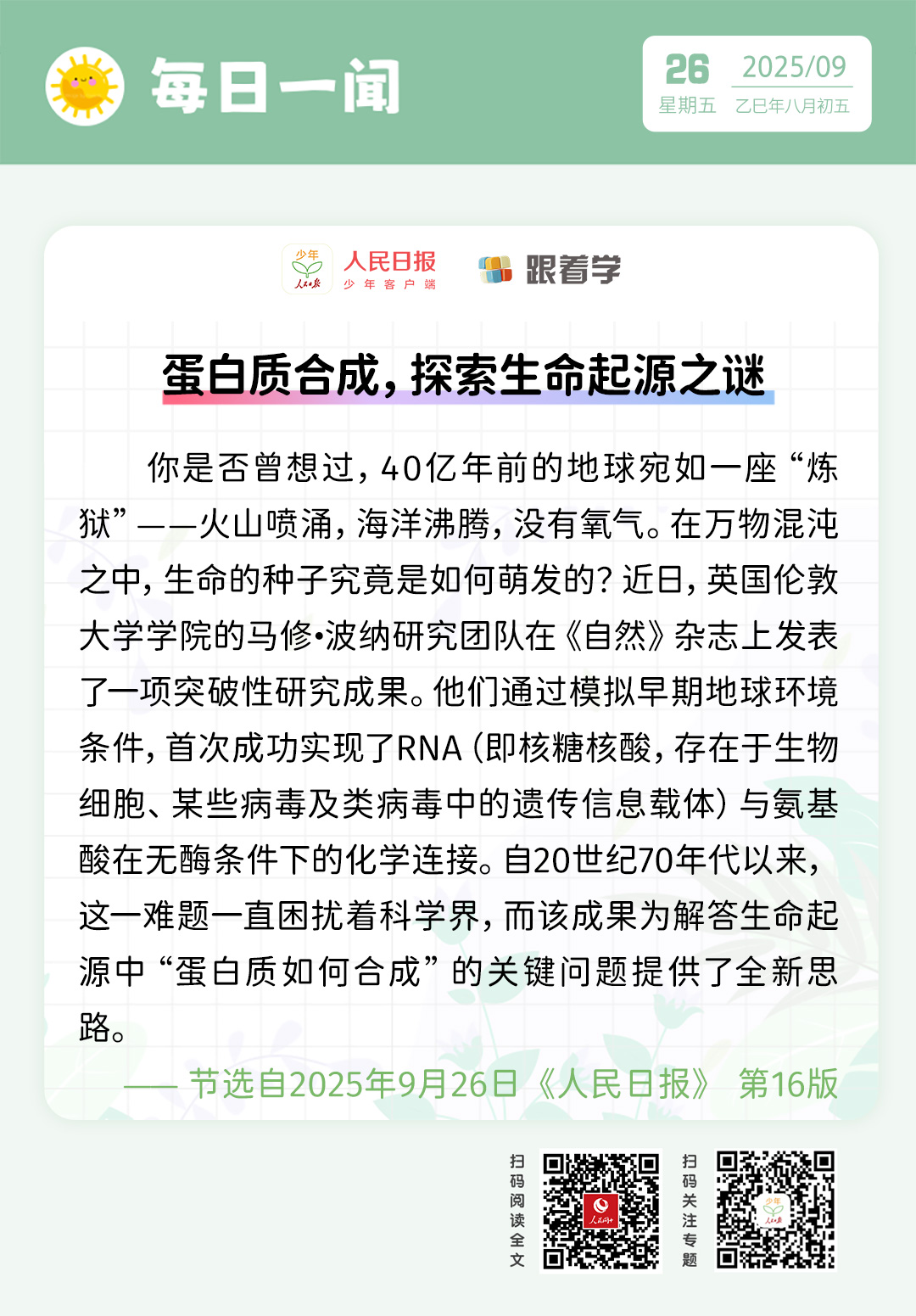 每日一聞丨蛋白質(zhì)合成,探索生命起源之謎