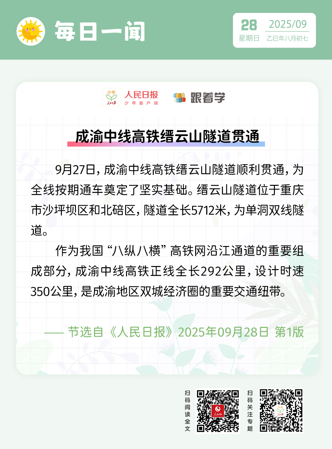 每日一聞丨成渝中線高鐵縉云山隧道貫通