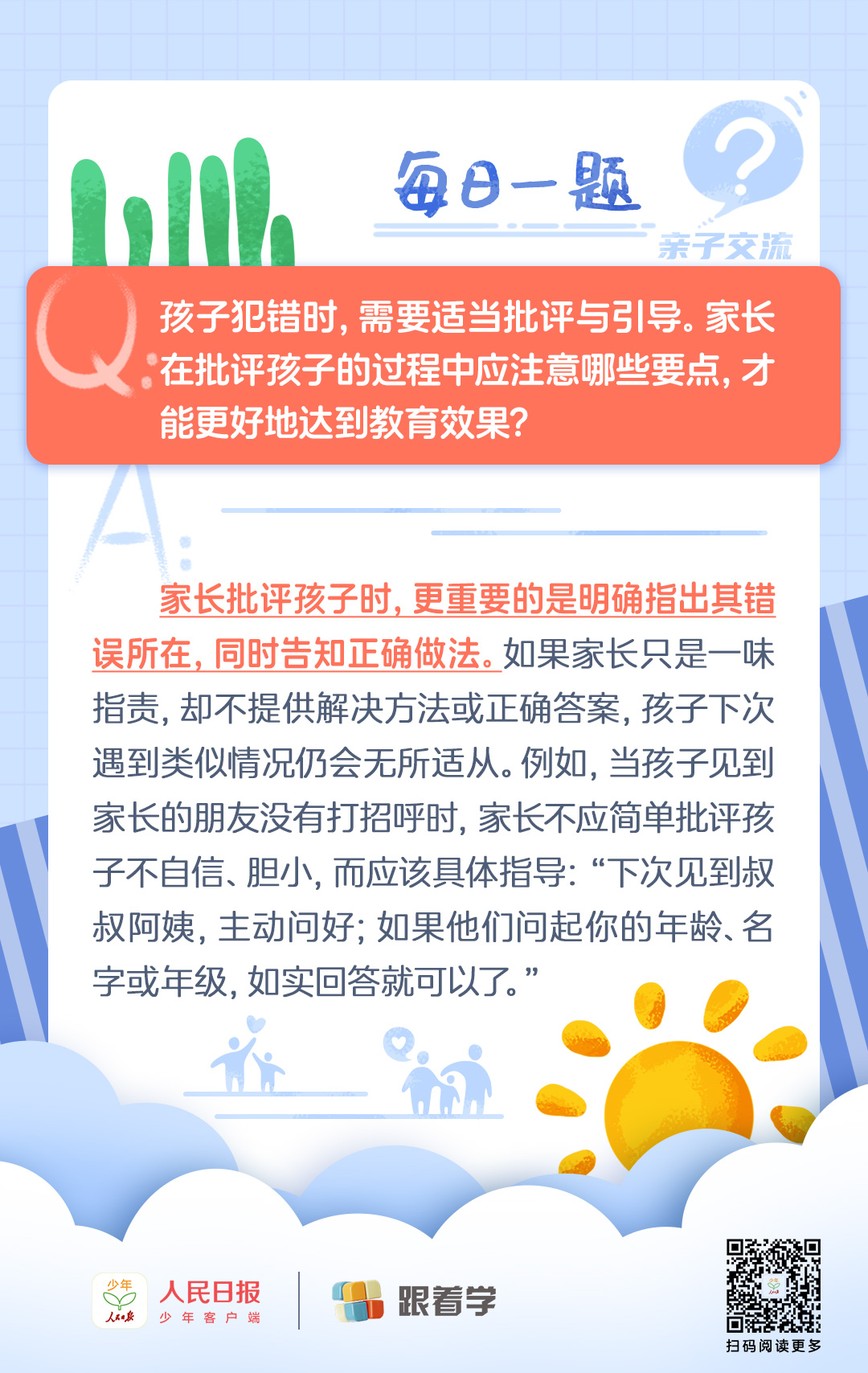 每日一題丨孩子做錯(cuò)了事情,家長(zhǎng)批評(píng)孩子需要注意什么?