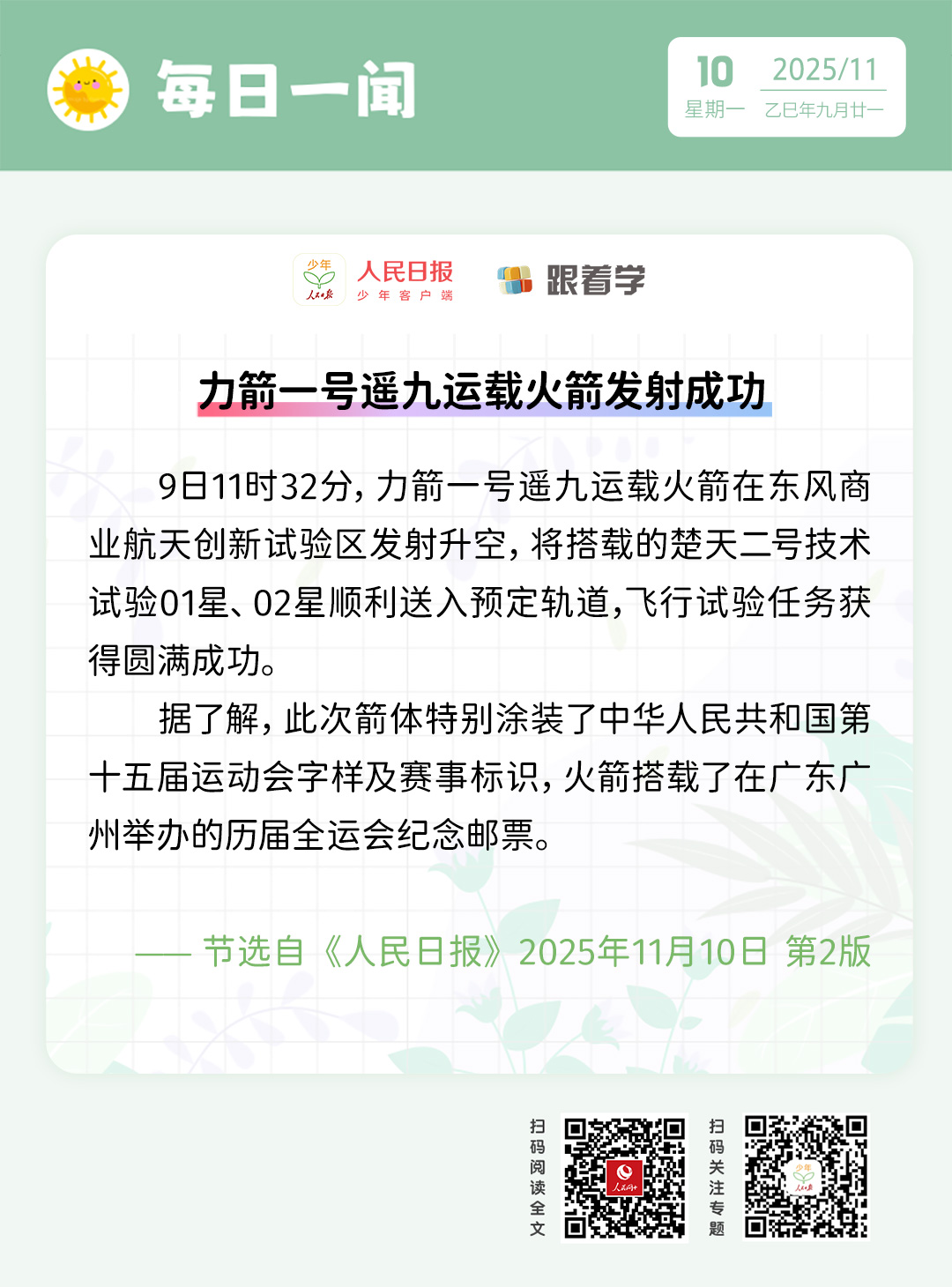 每日一聞丨力箭一號(hào)遙九運(yùn)載火箭發(fā)射成功