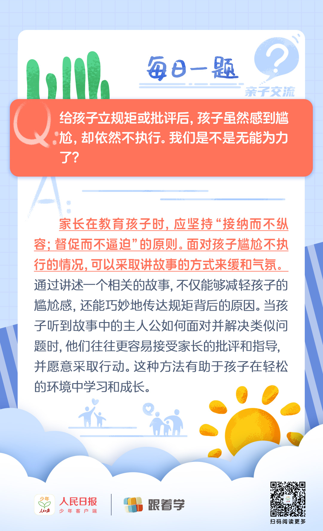 每日一題丨孩子做錯事被批評后雖感尷尬卻仍不守規(guī)怎么辦?