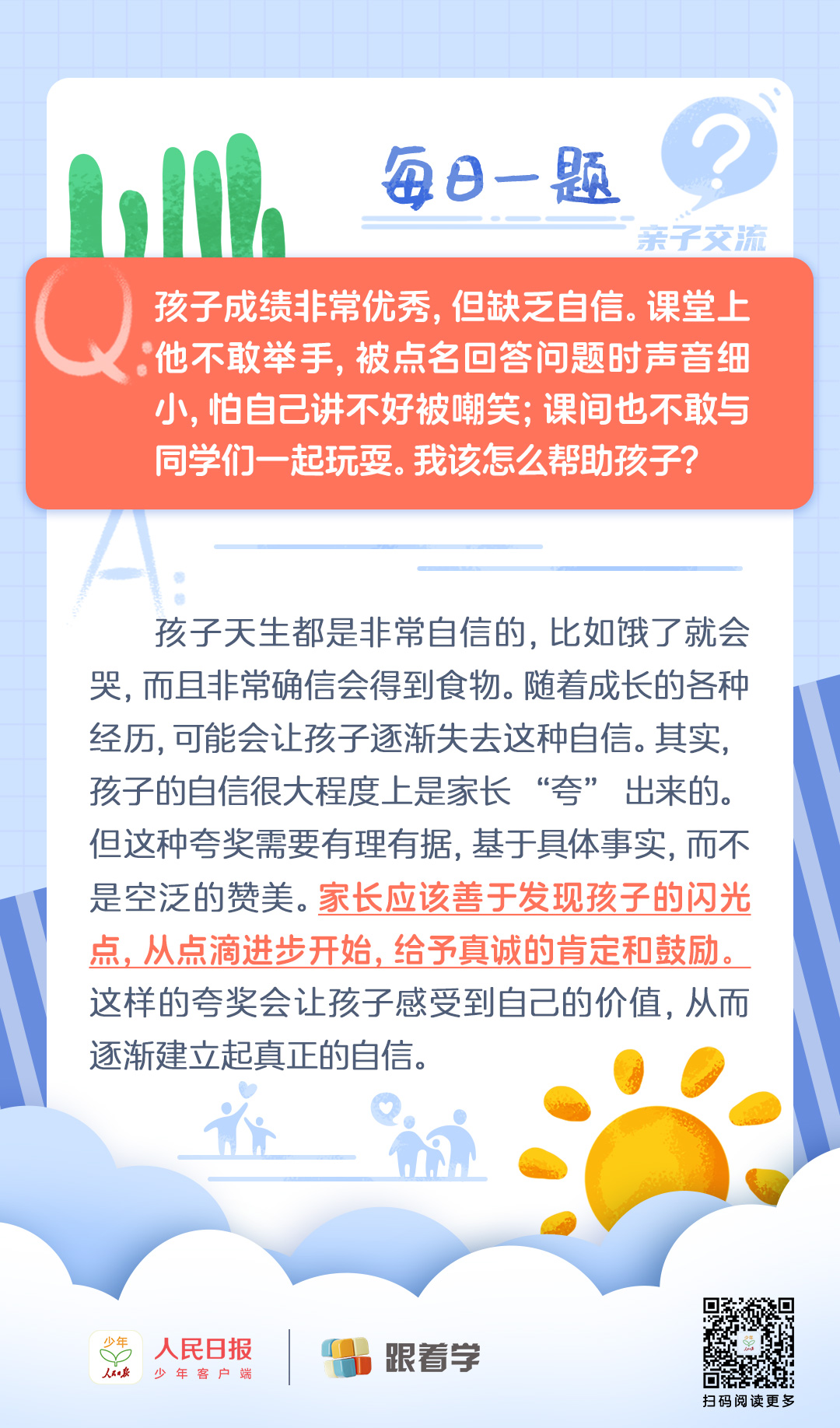 每日一題丨孩子缺乏自信,家長該怎么辦?
