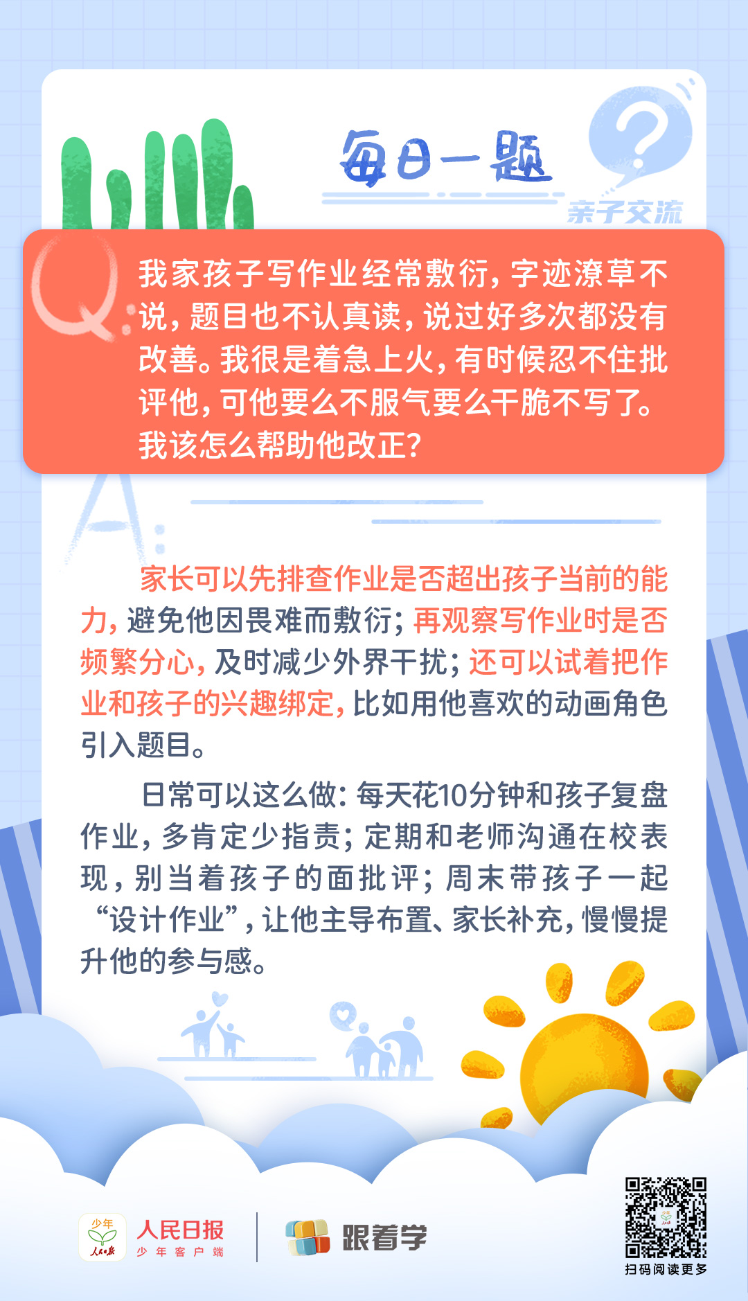 每日一題丨孩子寫作業(yè)總是敷衍,家長該如何有效解決?
