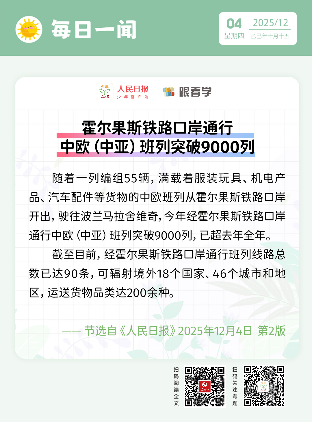 每日一聞丨霍爾果斯鐵路口岸通行中歐(中亞)班列突破9000列