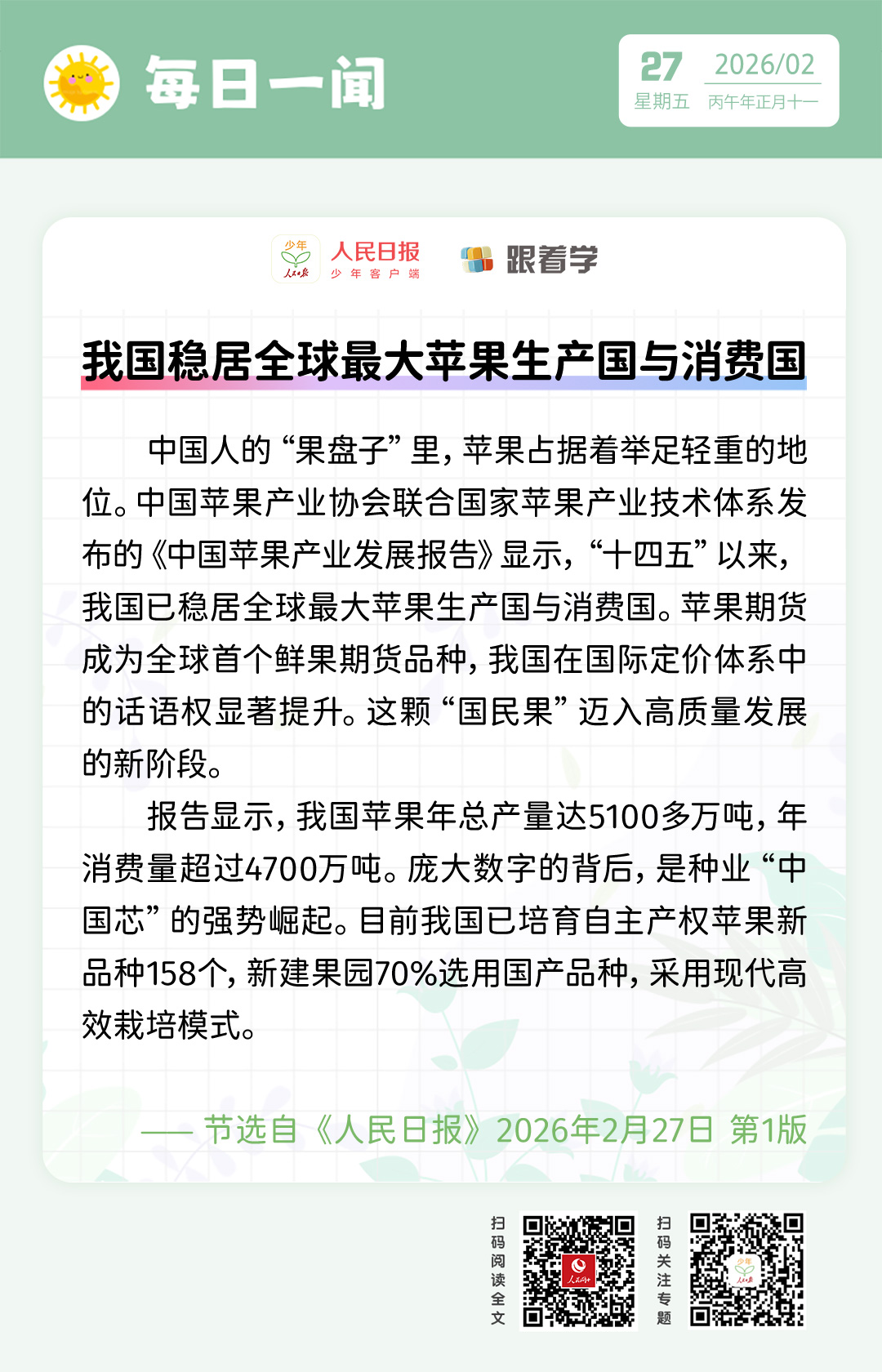 每日一聞丨我國(guó)穩(wěn)居全球最大蘋(píng)果生產(chǎn)國(guó)與消費(fèi)國(guó)