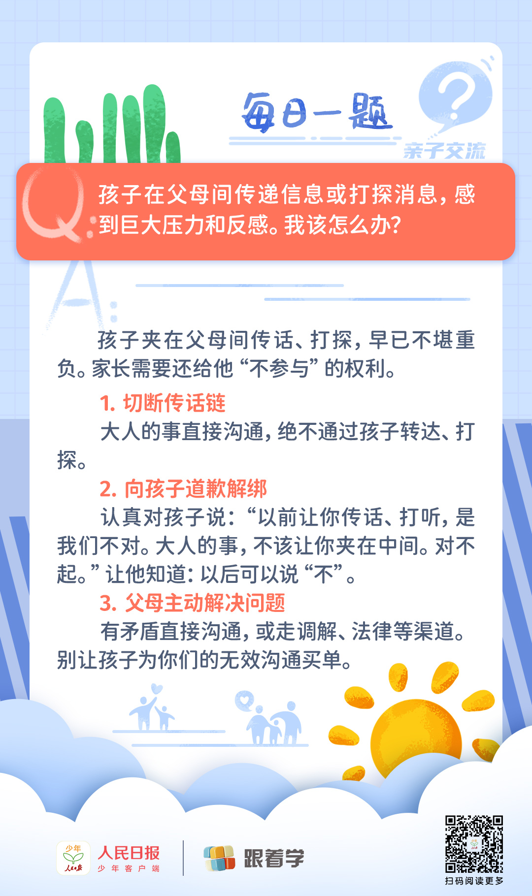 每日一題丨孩子夾在父母關(guān)系中間很為難,家長該怎么辦?