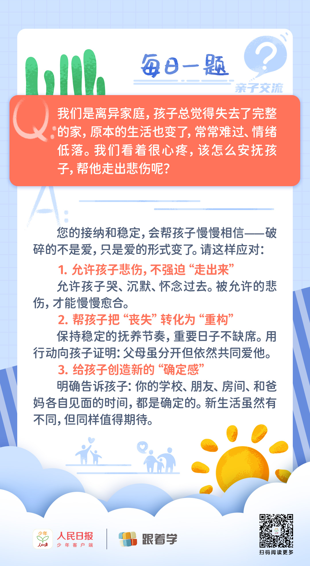 每日一題丨離異后孩子情緒低落,家長該如何安撫?